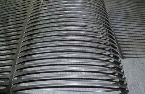 塑料土工格柵經過拉伸形成的具有方形或矩形的聚合物網材,按其制造時拉伸方向的不同可為單向拉伸和雙向拉伸兩種。它是在經擠壓制出的聚合物板材(原料多為聚丙烯或高密度聚乙烯)上沖孔,然后在加熱條件下施行定向拉伸。單向拉伸格柵只沿板材長度方向拉伸制成;雙向拉伸格柵則是繼續將單向拉伸的格柵再在與其長度垂直的方向拉伸制成。